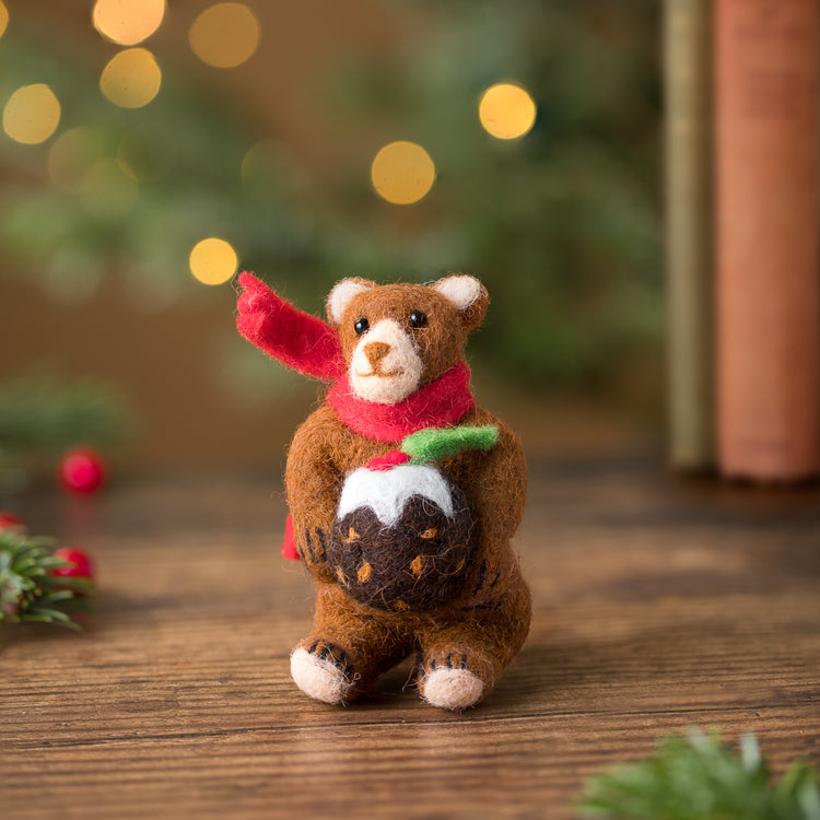 Each Sew Heart Felt bear is skilfully crafted by needle felting teeny layers of loose organic wool fibres, creating a beautifully sculptured and realistic felt bear ornament. Every bear has a unique personality and is a truly handmade artisan piece, perfect as a collectible decoration or thoughtful gift.