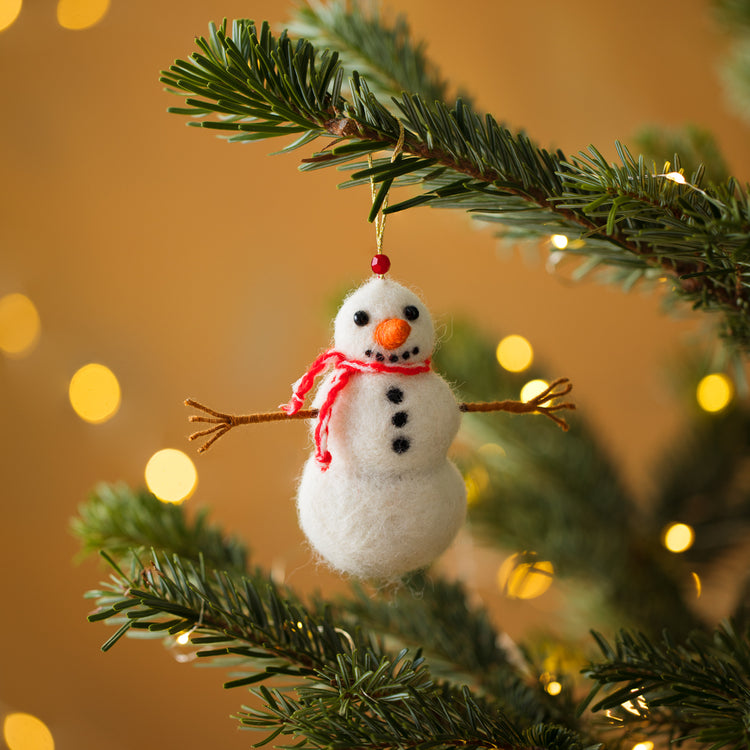 His little coal eyes, carroty nose, and cosy hand-knit scarf make him a time-honoured Christmas tree decoration… just don’t overheat the house!